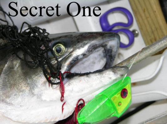 These rigs are tied with 50# leader material & have a handcrafted snell knot on VMC hooks. Tandem snelled trebles seldom miss even the slightest of bites!